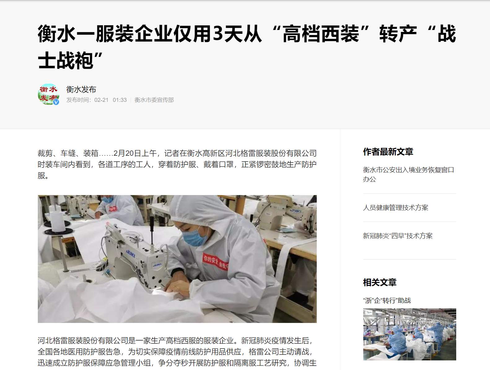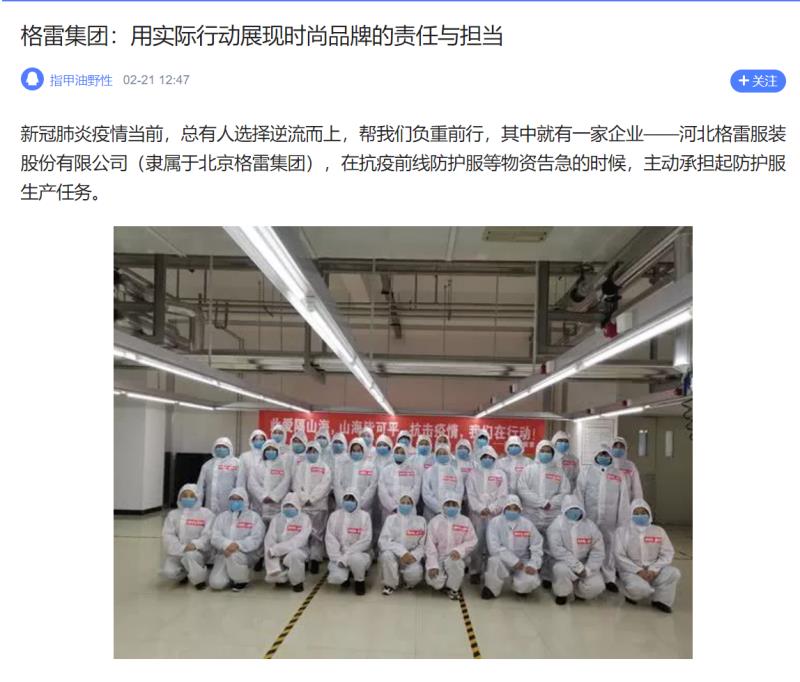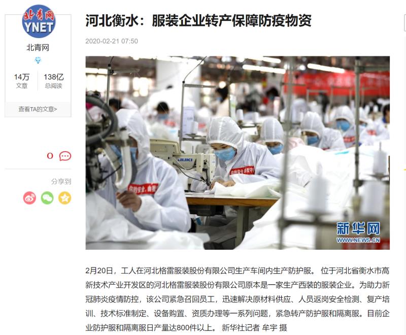 Recently, the news of Hebei Grand's production of protective suits to contribute to the battle against COVID-19 has gone viral on major media platforms both at home and abroad, with a total number of hits exceeding one million. Everyone spoke highly of Hebei Grand's courage and responsibility in this battle.